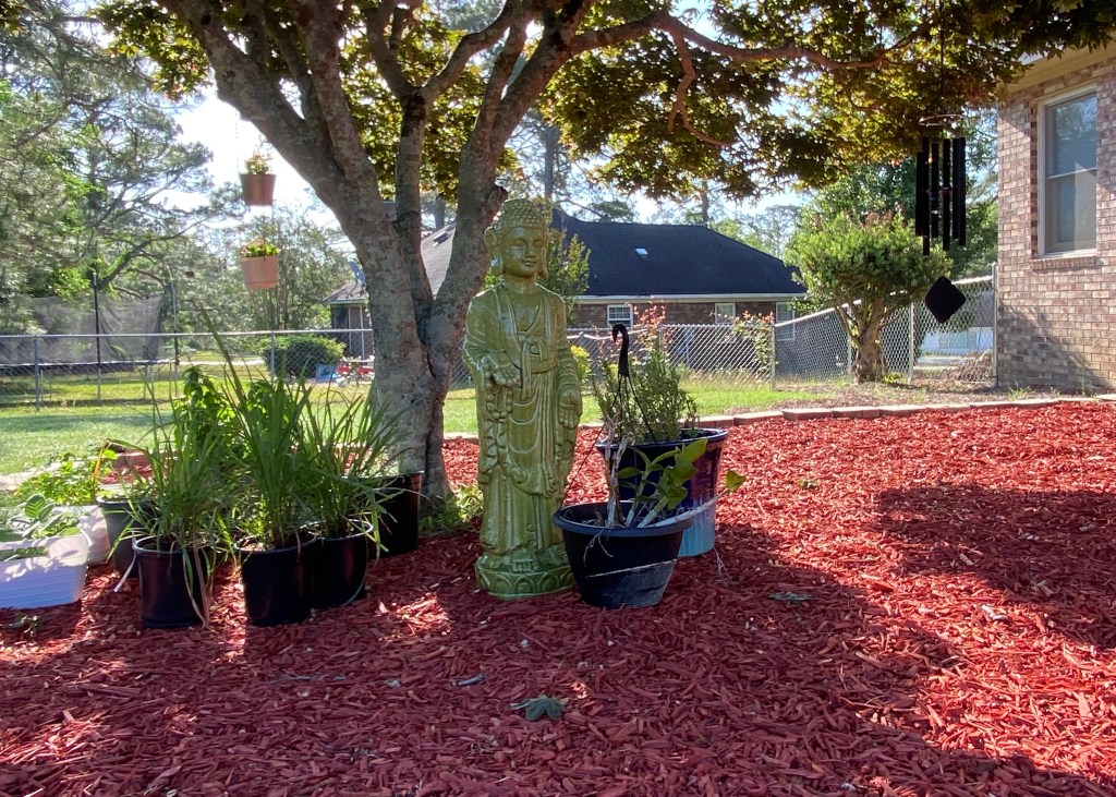 At the marina we drop off the herbs which, with three small orchids, will have to fill in for roses and blueberries, which I will miss, along with the Buddha and wind chimes. Return the rental car, borrow the marina car – a land yacht of a Caddie approved for dog transport. Pick up Katie at Happy Hounds. Return Cadillac keys. Red car green car.