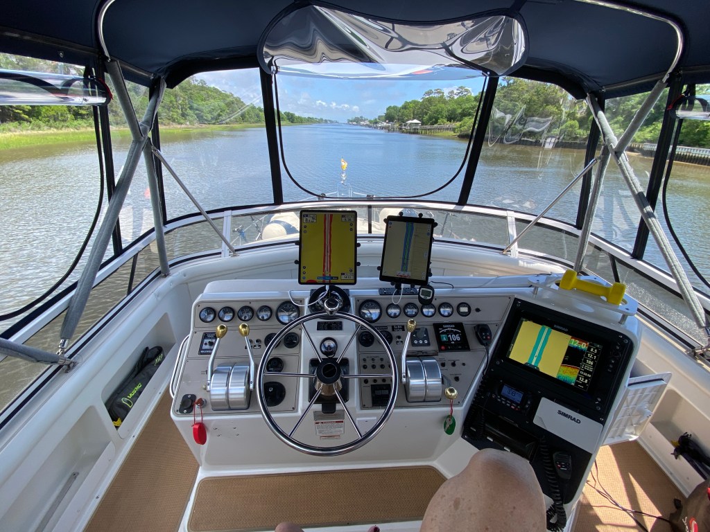 The Little River Swing Bridge was already opening today when I sighted it, a mile away, at the other end of a no-wake zone. I assumed the tender would close her bridge before IH reached it. I’ve had to hold there before, against some powerful, eddying currents, which is not not hard so I called on the radio.