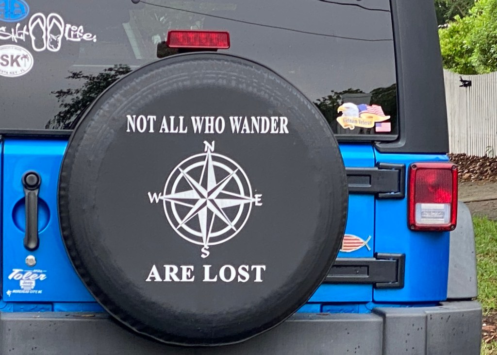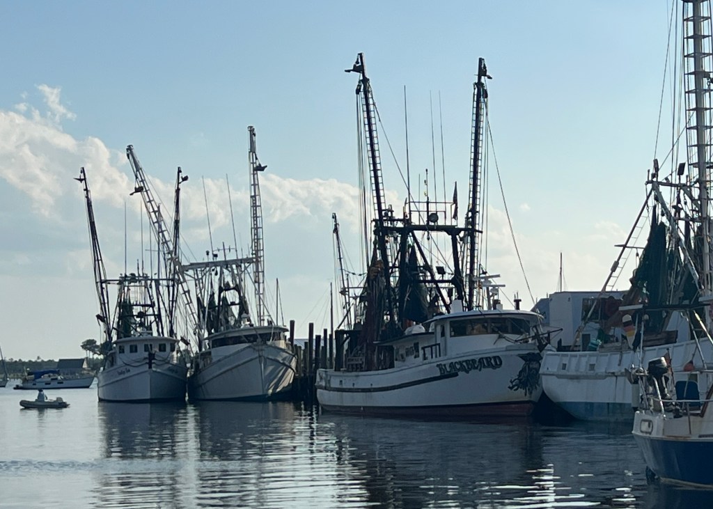 While Katie and I walked around, I spied a fake road sign. It showed a lanky, stooping fisherman in silhouette, wearing a hat and carrying a rod. It said CAUTION: OLD FISHERMAN. A few minutes later I saw a marker and dockside shrine to men I imagine haunted the dock and still haunt the dock at Ingram Bay Marina.